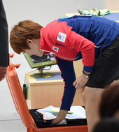 2014.09.20 13: 32미모의 북한선수 김우나,한국팀 연기에 집중'