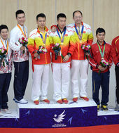 2014.09.20 13: 38은메달 목에 걸고 미소 짓는 한국 남자 사격 대표팀