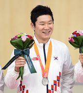 2014.09.20 13: 36은메달 목에건 진종오 환한 미소