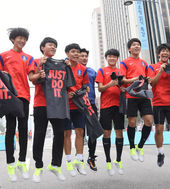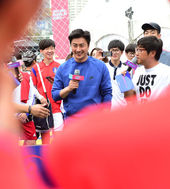 축구 꿈나무들의 열정에 미소짓는 안정환