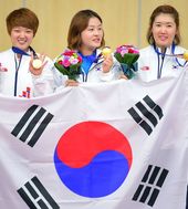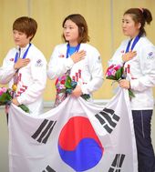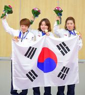2014.09.22 18: 55금메달 김장미-이정은-곽정혜,'나는 자랑스러운 태극기 앞에'