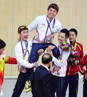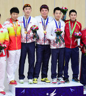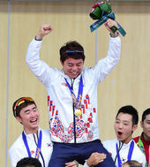 2014.09.24 16: 29'2관왕' 김준홍,'중국 선수들과 어깨동무'