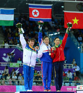 2014.09.24 21: 27북한 홍은정,'금메달 시상대에 우뚝'