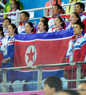 2014.09.24 21: 29인공기 펼치고 국가 부르는 북한 선수단