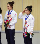 2014.09.24 10: 53'금메달' 음빛나,'태극기 앞에서 거수경례'