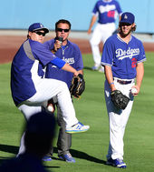 2014.09.24 09: 43류현진, '맥과이어 코치님, 훈련 합류했어요'