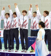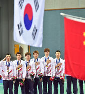 2014.09.24 00: 32시상대 가운데 오른 배드민턴 대표팀