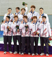 2014.09.24 00: 39금메달 목에 건 자랑스러운 한국 배드민턴 대표팀