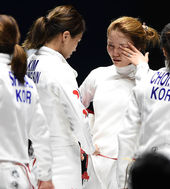 2014.09.25 18: 55눈물 흘리는 한국 여자 펜싱 대표팀