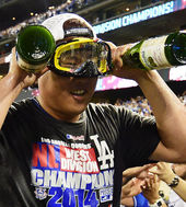 2014.09.25 17: 06우승 세리머니 류현진,'샴페인 장전 완료'