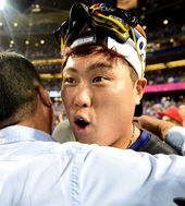 2014.09.25 14: 45류현진, '아버지, 다저스 2년 연속 우승했어요'