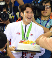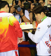 2014.09.26 21: 46박태환,'쑨양에게 생일케이크 선물 받았어요!'
