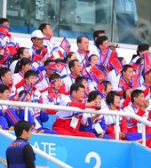 중국전 열띤 응원 펼치는 북한 응원단