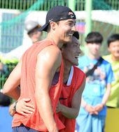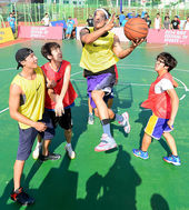 2014.09.27 16: 08득점성공에 미소짓는 농구 꿈나무와 다니엘 헤니