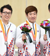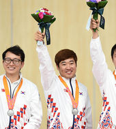 2014.09.27 15: 22한진섭-김종현-권준철,'은메달 환호'