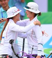 2014.09.27 11: 06女 컴파운드 양궁대표팀,'금빛 확정에 부등켜 안은채'