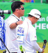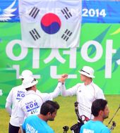2014.09.27 11: 38男 컴파운드 양궁대표팀,'은메달도 장하다'