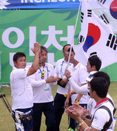 2014.09.28 12: 37한국 남자 리커브 대표팀,'동메달 목에 걸고'