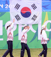2014.09.28 12: 39손 흔드는 한국 여자 리커브 대표팀
