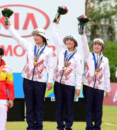 2014.09.28 12: 52정다소미-이특영-장혜진,'시상대 가장 높은 곳에서 환호'