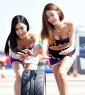 2014.09.28 12: 45레이싱모델 장인영-이유은,'신상 타이어와 함께 셀카 모드~'