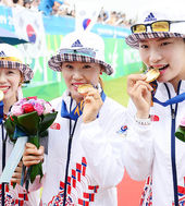 2014.09.28 12: 54장혜진-이특영-정다소미,'금메달 맛 좀 볼까?'