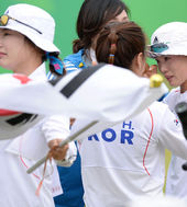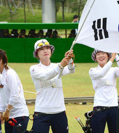 2014.09.28 10: 53한국 여자 리커브 대표팀,'태극기 휘날리며'