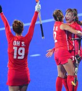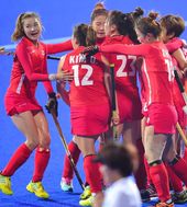 2014.09.29 19: 42다시 앞서가는 골에 환호하는 女하키대표팀