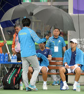 2014.09.29 16: 53정현-임용규,'비 그칠때까지 있어야하나요?'