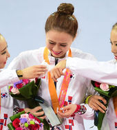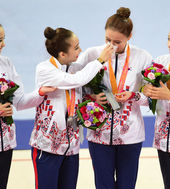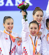 2014.10.01 21: 12손연재-김윤희-이다애-이나경,'은메달 행복한 미소'