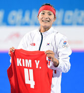 2014.10.01 21: 52주장 김종은,'부상 김영란 유니폼 들고 환한 미소'