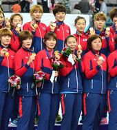 2014.10.01 21: 52韓 여자 하키대표팀,'시상대 가장 높은 자리에 우뚝'