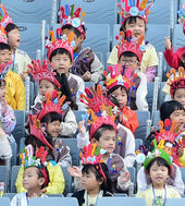 2014.10.01 10: 56육상 응원에 동원된 유치원생들