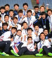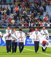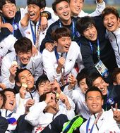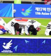 2014.10.02 23: 29한국 축구대표팀,'28년 한 풀고 금메달 포즈'