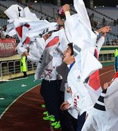 2014.10.02 23: 40태극기 들고 그라운드 도는 태극전사들