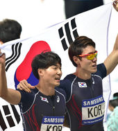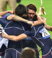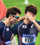 2014.10.02 21: 39얼싸안고 눈물 흘리는 남자 1600m 계주팀