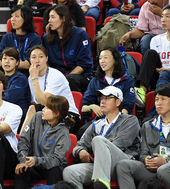 2014.10.03 18: 39금메달 女농구 대표팀,'男 대표팀 응원왔어요'