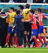 2014.10.03 00: 05연장 짜릿한 골든골에 환호하는 축구대표팀