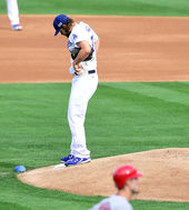 2014.10.04 08: 31홈런 허용하고 아쉬워하는 LA 다저스 선발투수 커쇼
