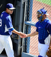 2014.10.04 05: 24불펜피칭 마친 류현진,'부테라 수고했어'