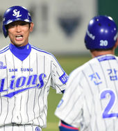 2014.10.06 21: 47안타치고 아쉬워하는 진갑용,'2루까지 진루했어야 했는데'