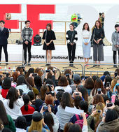 2014.10.07 17: 12팬들 환호 속 BIFF 야외무대 인사 갖는 영화 '카트'