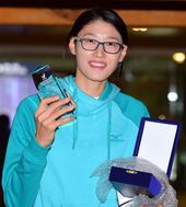 2014.10.09 22: 29출국 김연경,'금메달 트로피에 환한 미소'