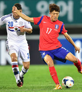 2014.10.10 20: 45한국vs파라과이 파라과이 문전 흔드는 이청용