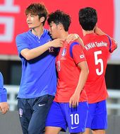 2014.10.10 22: 08위로하는 기성용,'흥민아! 다음에 한골 넣자'