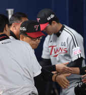 2014.10.11 20: 54양상문 감독,'승리의 기쁨을 코치진과 함께'