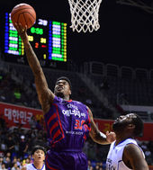 2014.10.11 16: 35동부 사이먼,'상대 기 죽이는 파워풀한 원핸드 덩크'