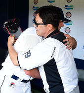 2014.10.12 12: 55마야의 사과에 포옹으로 용서하는 LG 양상문 감독