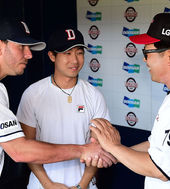 2014.10.12 13: 02마야의 사과를 따뜻한 미소로 받아주는 양상문 감독