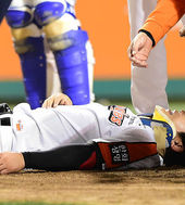 2014.10.13 21: 25헤드샷 맞은 한화 장운호,'말할 수 없는 고통'